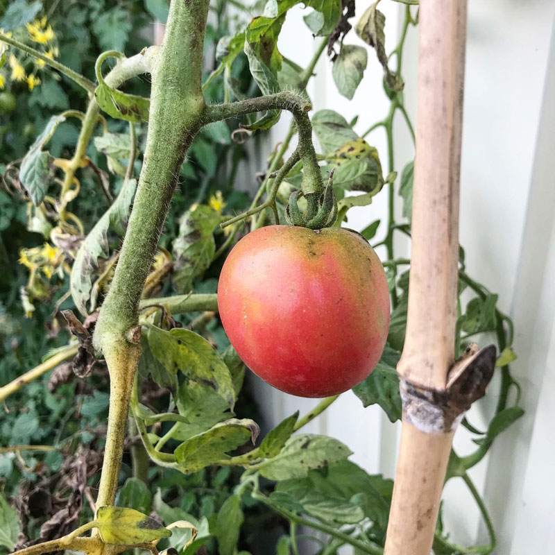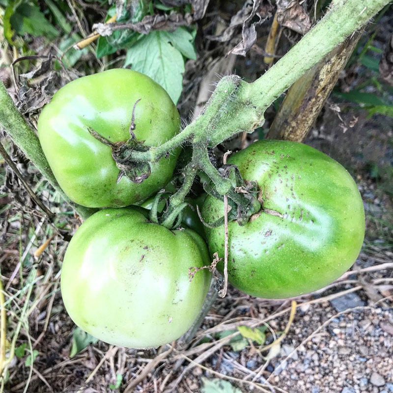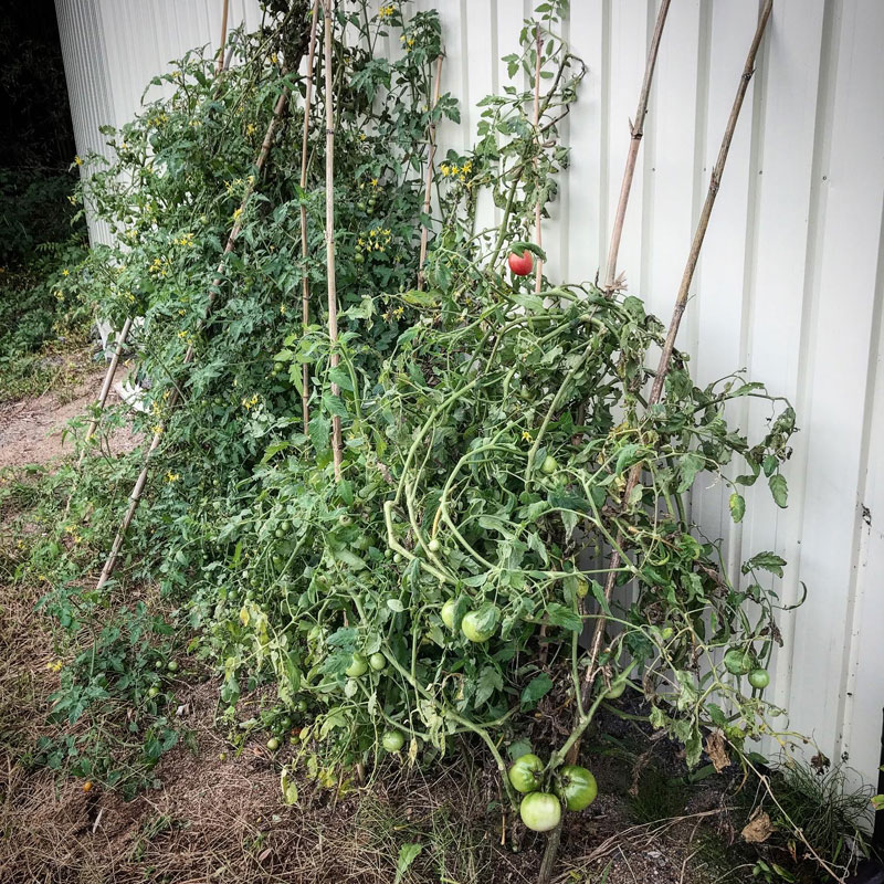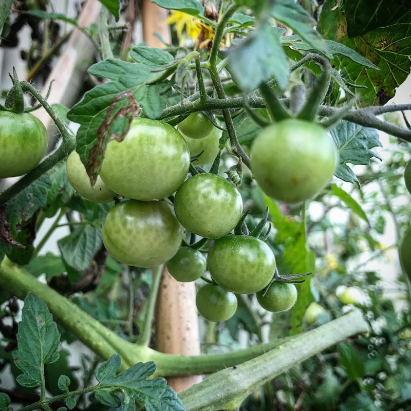 夏の間、ほとんど食べられなかったトマトがここにきて急に鈴なりに実をつけ始めた。