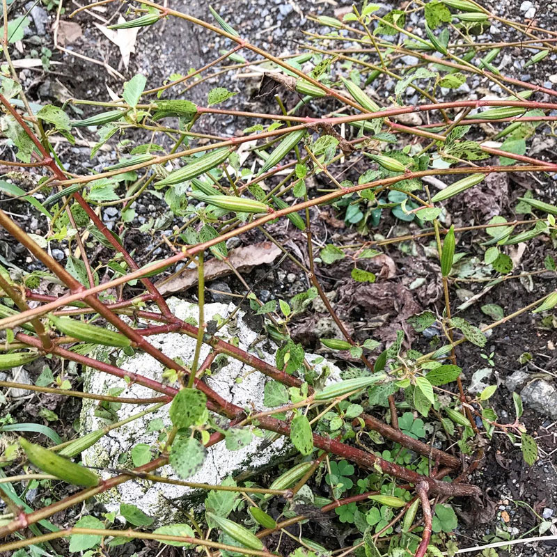 モロヘイヤは自家採種するため倒さずに畑に残しておく。