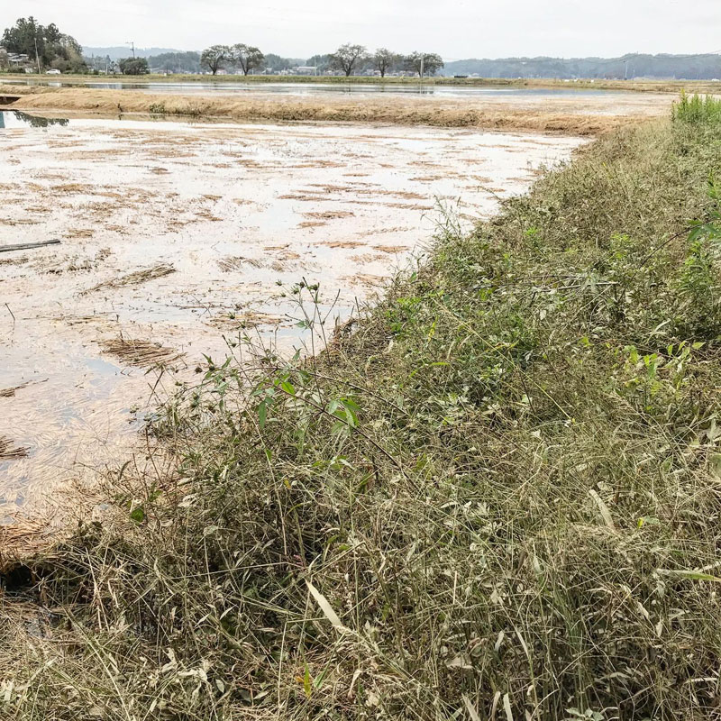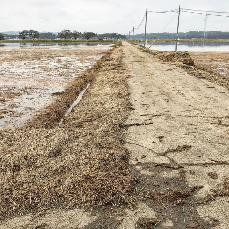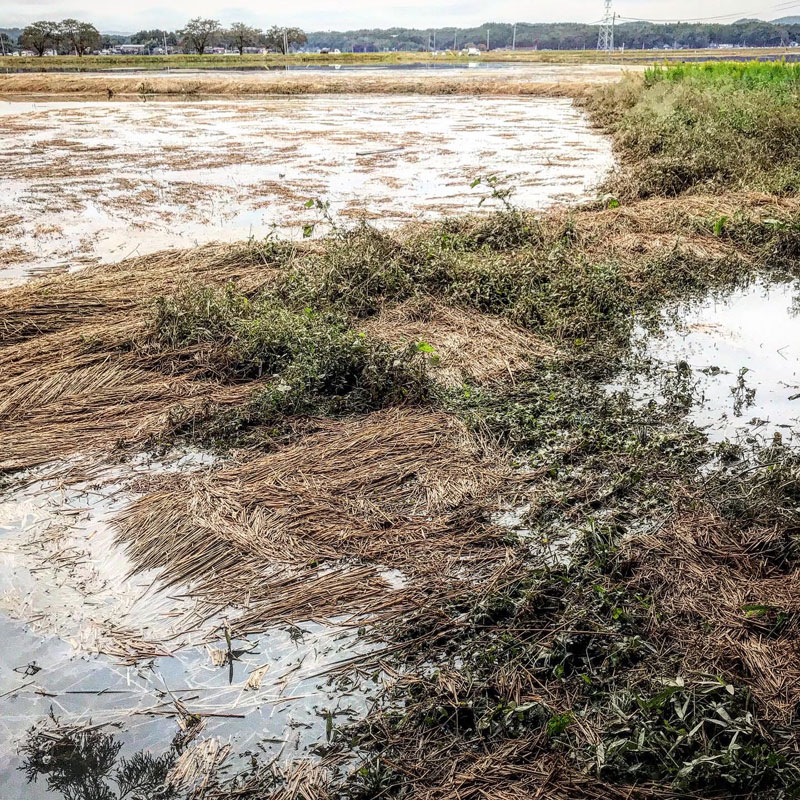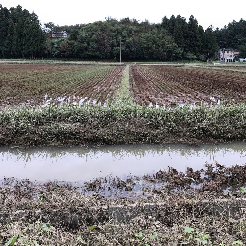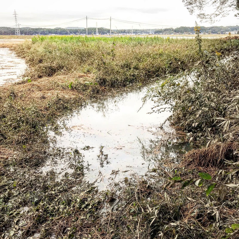 大風の浸水から6日目にしてやっと田んぼや水路、道路の境が見えた。