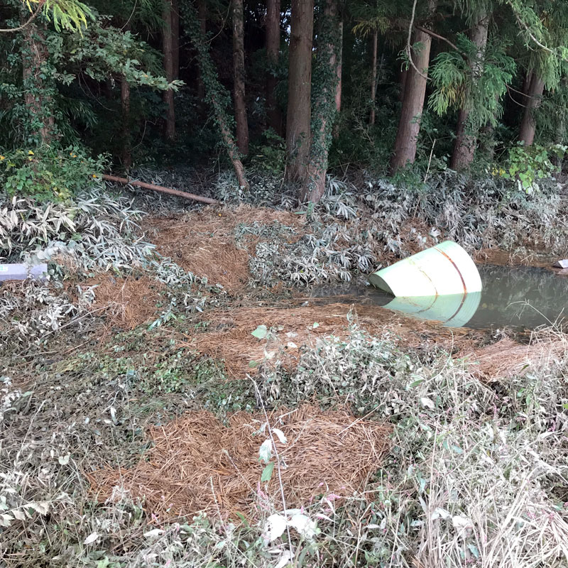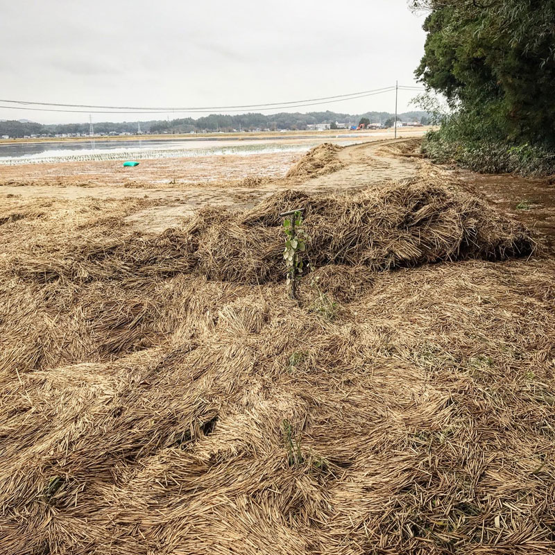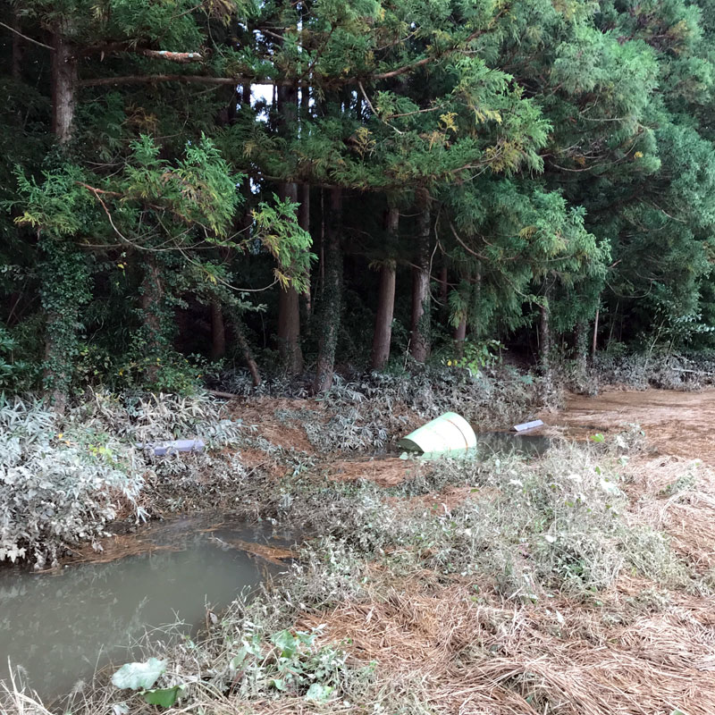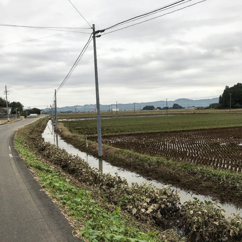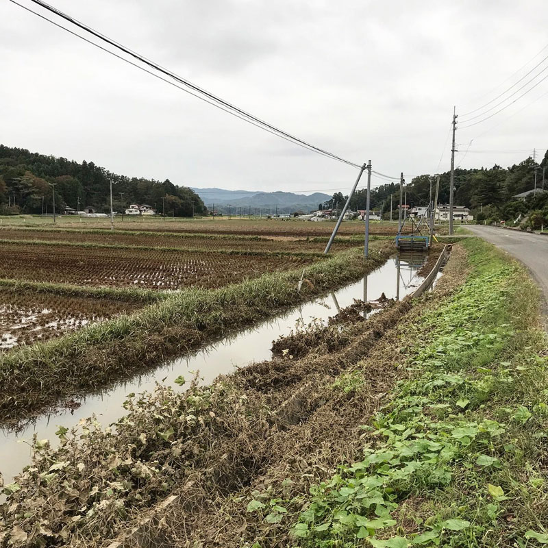 大風の浸水から6日目にしてやっと田んぼや水路、道路の境が見えた。