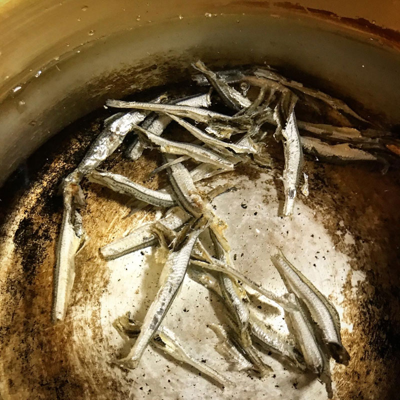 明日の味噌汁様に幼なじみがくれたいりこの頭と腹わたをとって鍋の水に一晩つけておく。