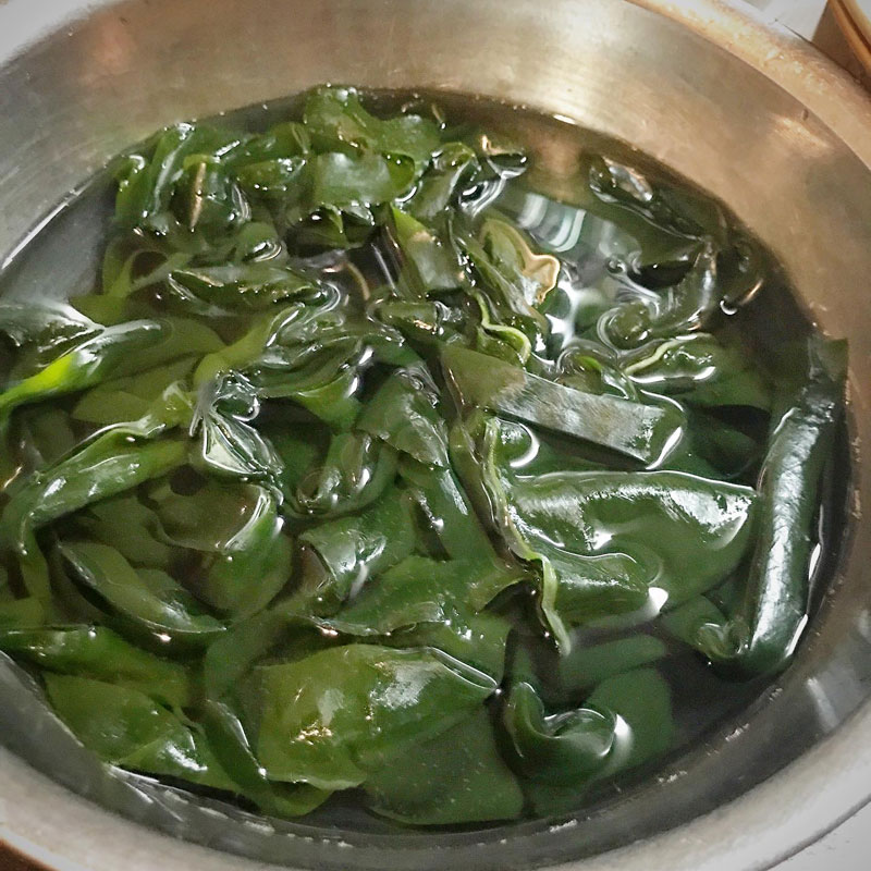 具にいただいた塩蔵わかめも水に戻しておく。いただいたものばかり、食べてるな・苦笑