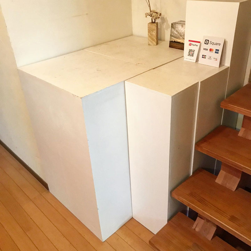 そうすれば部屋や玄関を埋めてるたくさんの作品展示台と作品は会場に移動してて部屋からは無くなってかなりのスペースができてる。でも今回は日程の都合などで個展開始前なので作品だらけ、展示台だらけで大変。