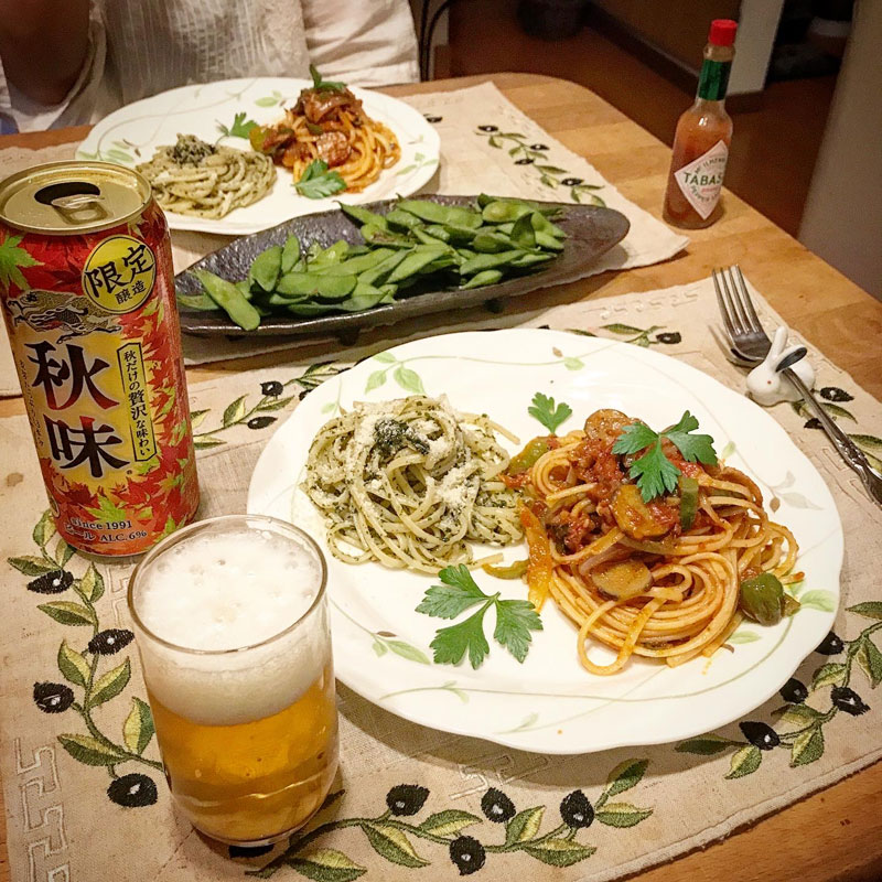 畑のバジルを倒して昨日作ったバジルソースでジェノベーゼとトマトソースの2色パスタ作った。ジェノベーゼ好きなんだけどそれだけをたくさん食べるの好きじゃない。