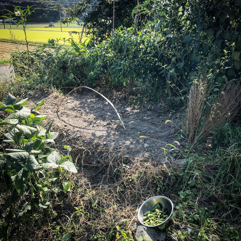 秘伝豆の大きな枝が無くなって畑の見通しが良くなった。残り後1回分かな。