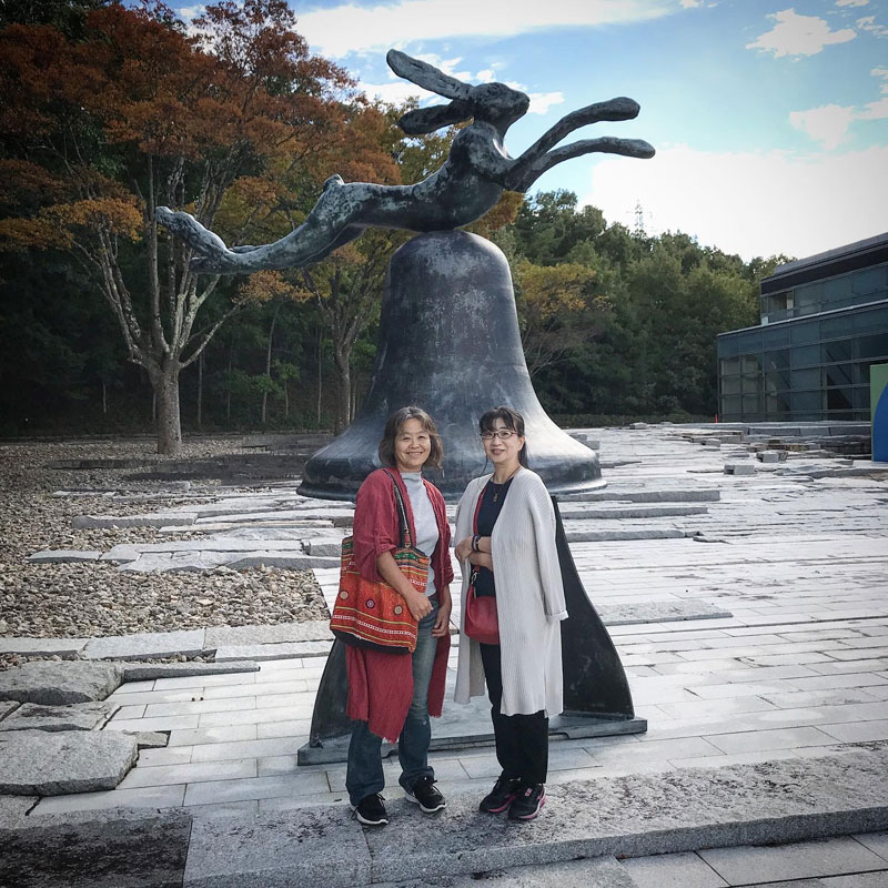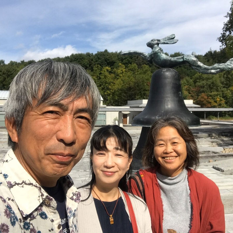志村ふくみさんの作品を堪能した後の3人で記念撮影。