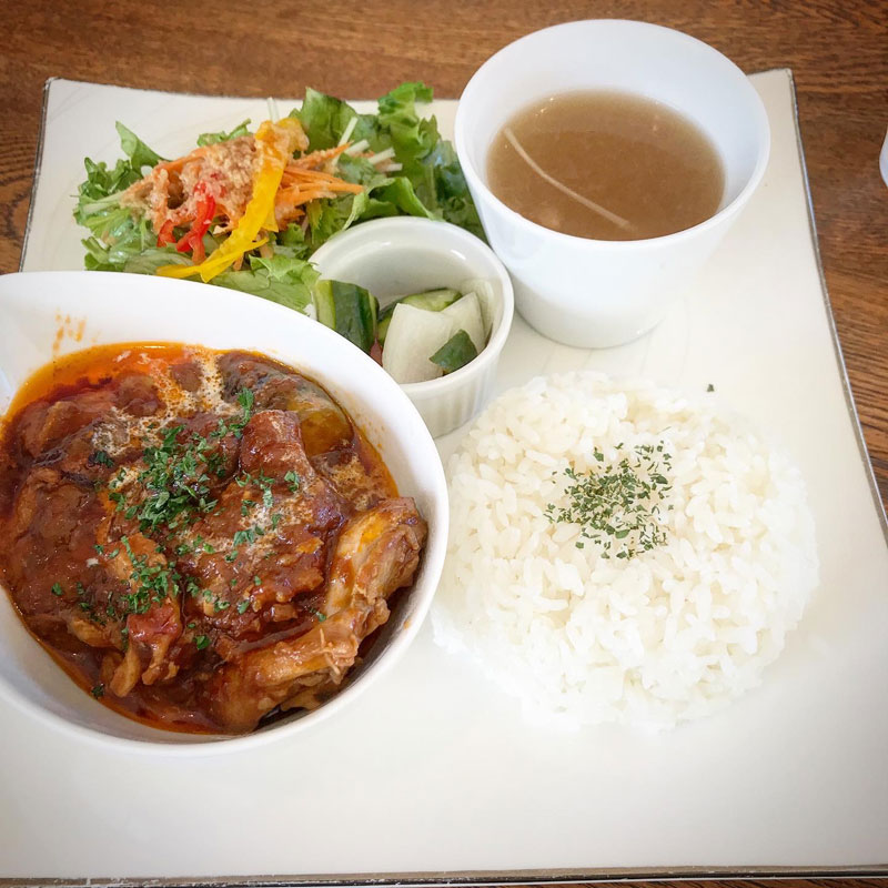 ナスと鶏肉のトマト煮のワンプレートランチ、美味しい。