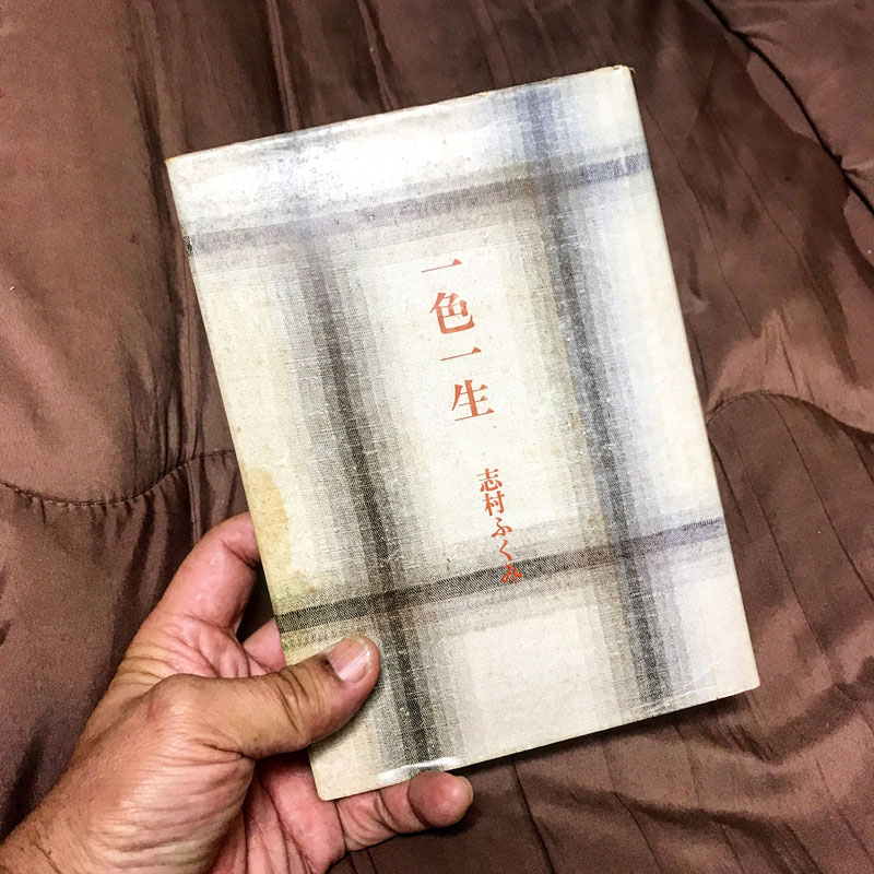 カミさんが今は亡きおばあちゃんからもらって大切にしている本「一色一生」志村ふくみ著。そのタイトルから感じられる本気、というか凄味から志村ふくみさんの名前は僕の心に刻まれた。今日、作品しか知らない時に一緒にグループ展をやって欲しいと頼んで何回か実際にグループ展をやって友だちになった染色家のあやこさんとカミさんと志村ふくみ展を見に行った。志村ふくみさんが立体的に立ち上がる様に工夫された素晴らしい展覧会だった。