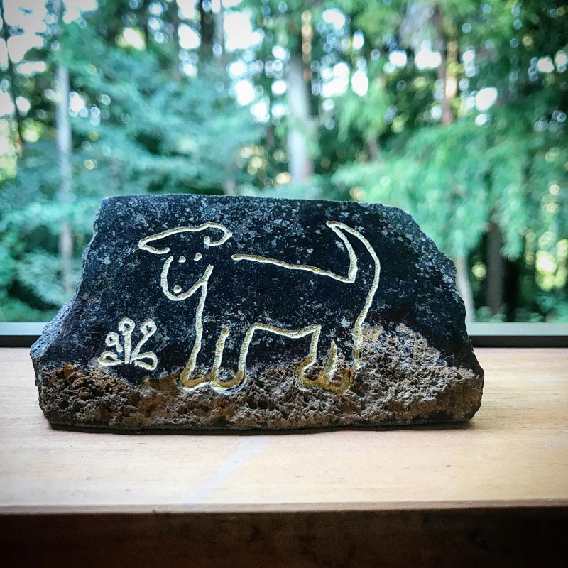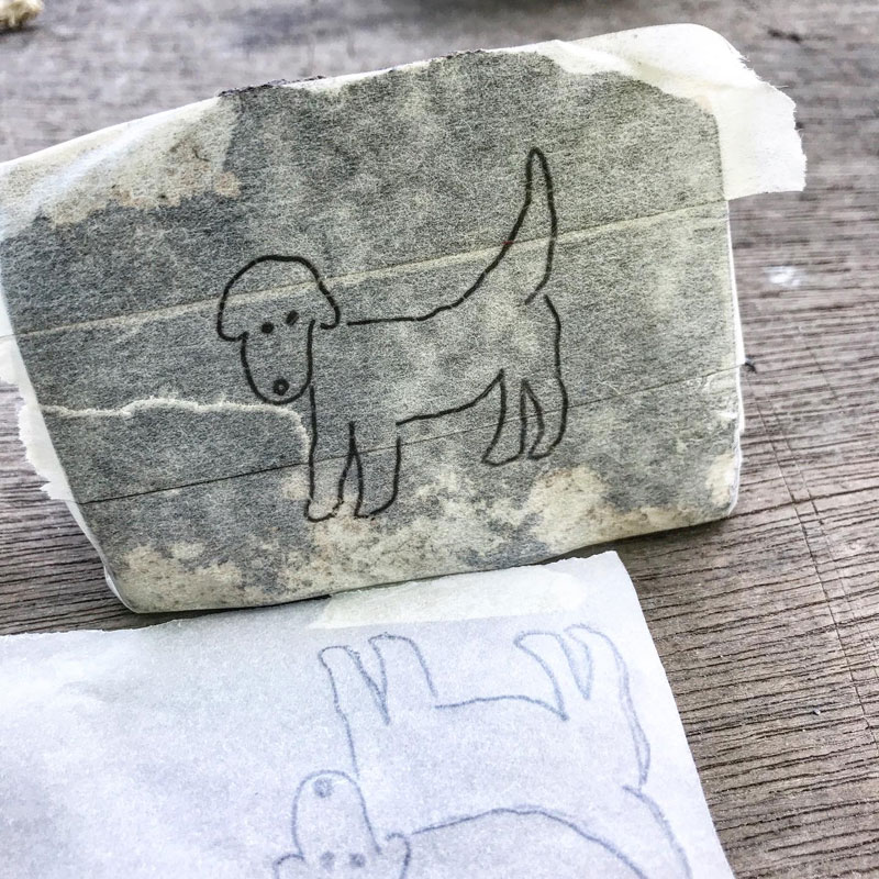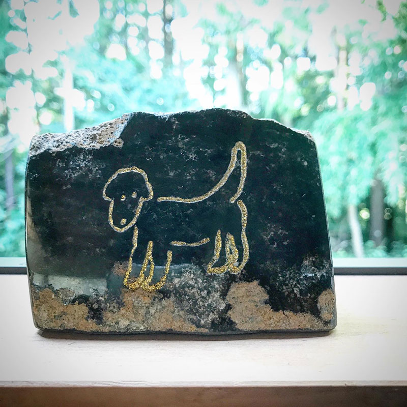 カミさんの絵をトレースして彫って金色に着色した。