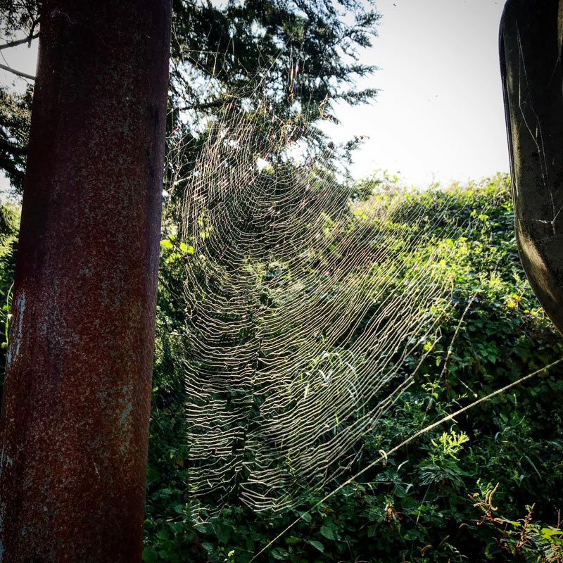 朝の蜘蛛の巣。