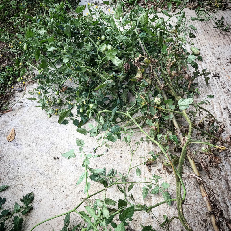 今年のミニトマトの大木も抜く。使えるなら友だちの染織家のあやこさんに素材としてもらってもらおう。