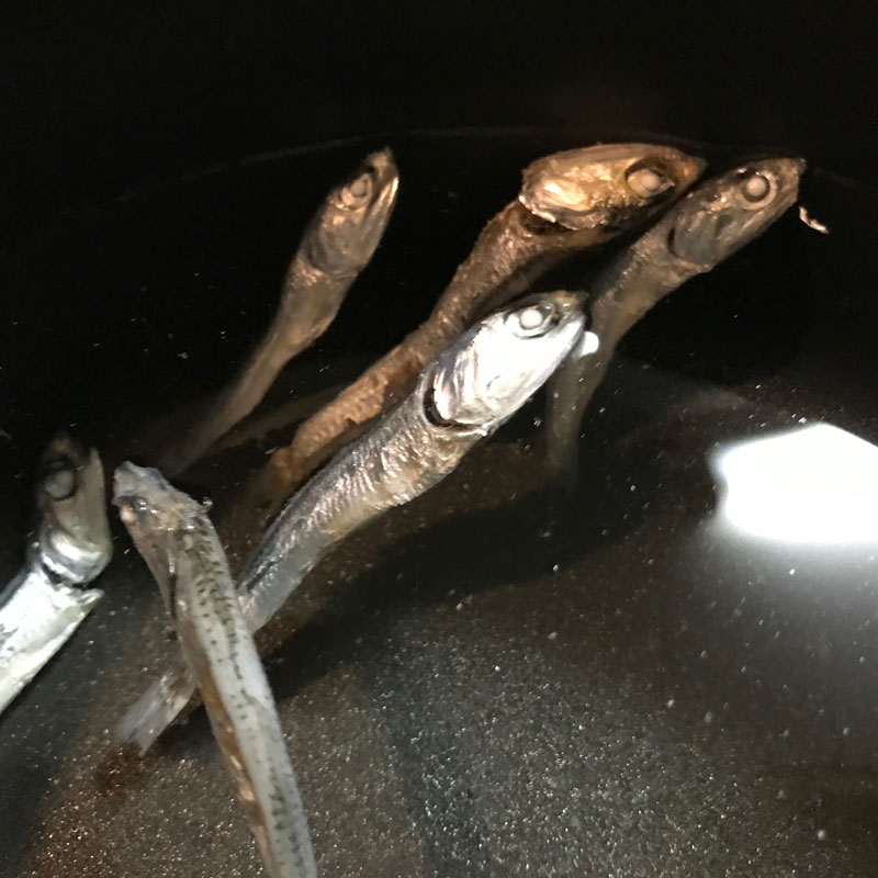 今回は頭と内蔵をとらずに丸のまま。なんか頭が重そうな気がするけど尾の方が重くて頭が浮く。
