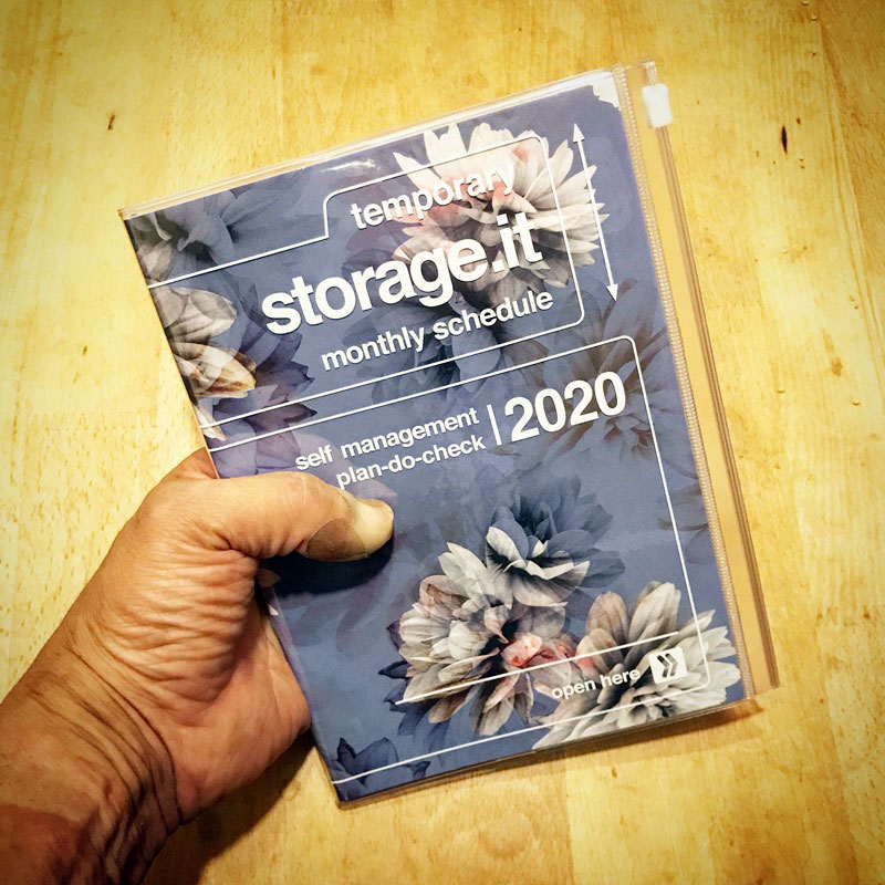 ネットで買った来年の手帳届いた。DMや展覧会のチケットとかを透明なスライドジッパー付塩ビ製カバーの表紙に入れられるマークスストレージ ドット イットに出会ってから超気にいってずっとこれ。