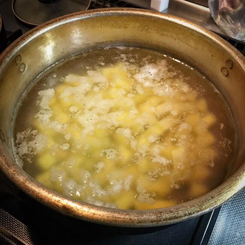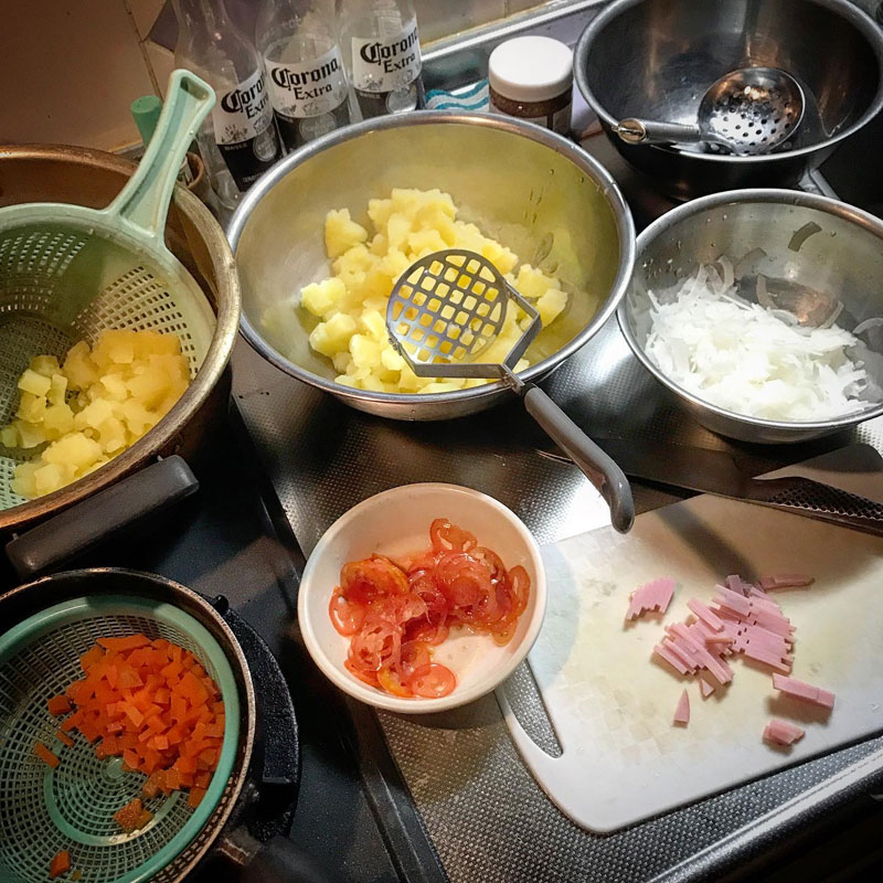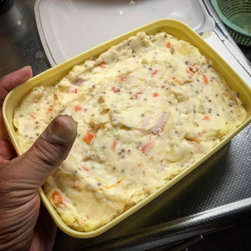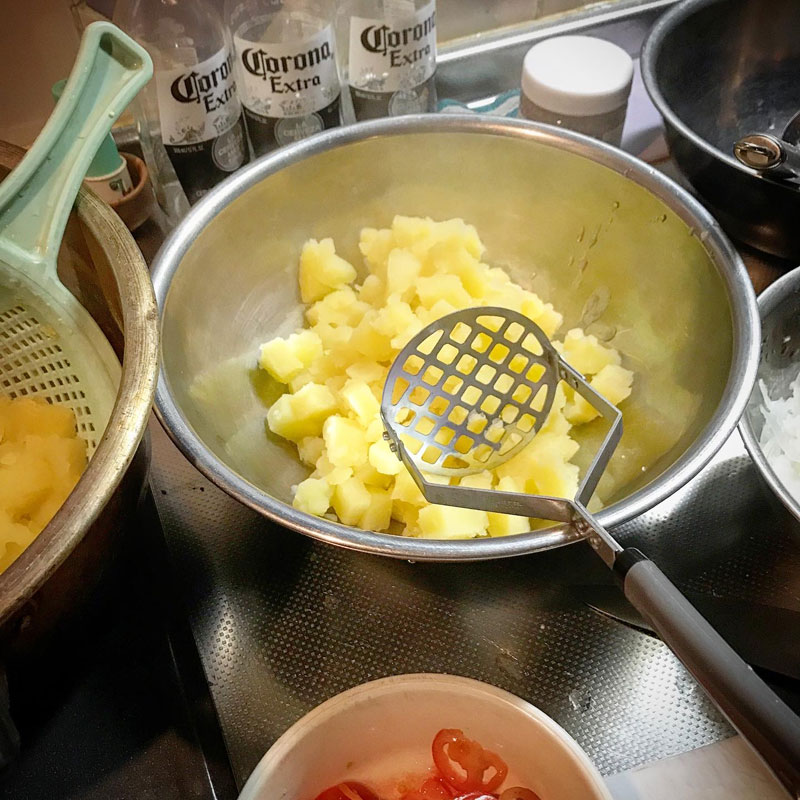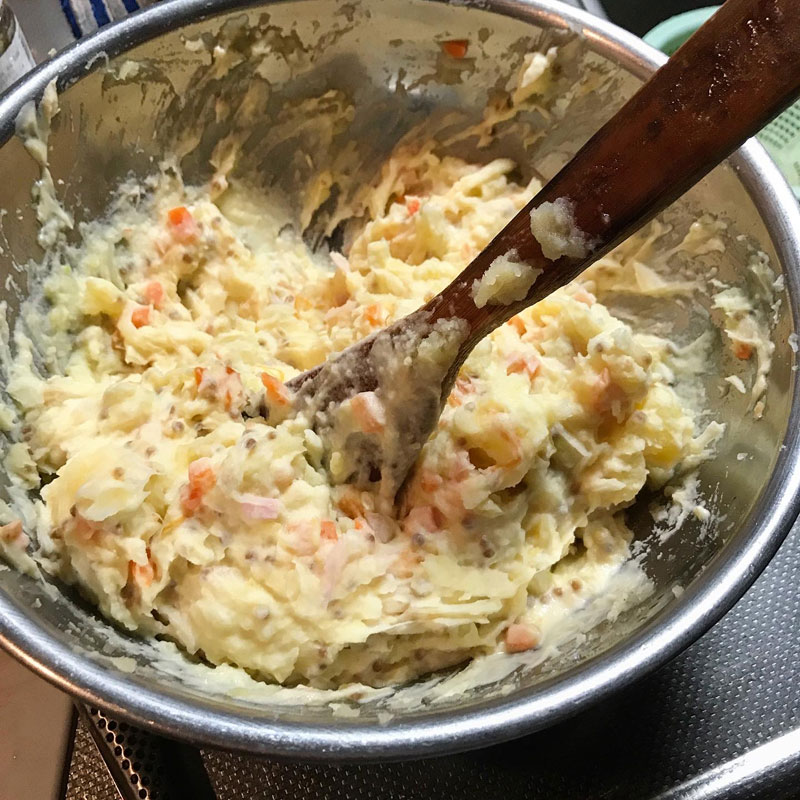 この前作ったポテトサラダが美味しくてあっという間にたべてしまったんだけど、明日の居酒屋我家でまた食べたいなぁと思って夜中に突然ポテサラ作ってしまった。作った直後より一日くらい経った方が味が馴染んで美味しいから。握り拳大の特大のキタアカリ4つを茹で始める。