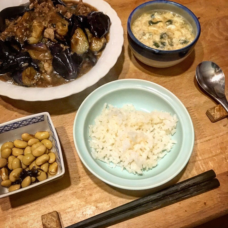 卵スープには氷を作るトレーでサイコロ状に冷凍してあるモロヘイヤもいれて。(これもピンぼけだ)