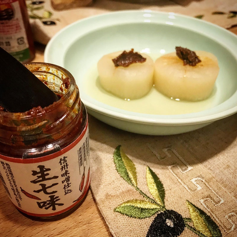 生七味で食べると最高。幼なじみにいいもの教えてもらった、生七味。