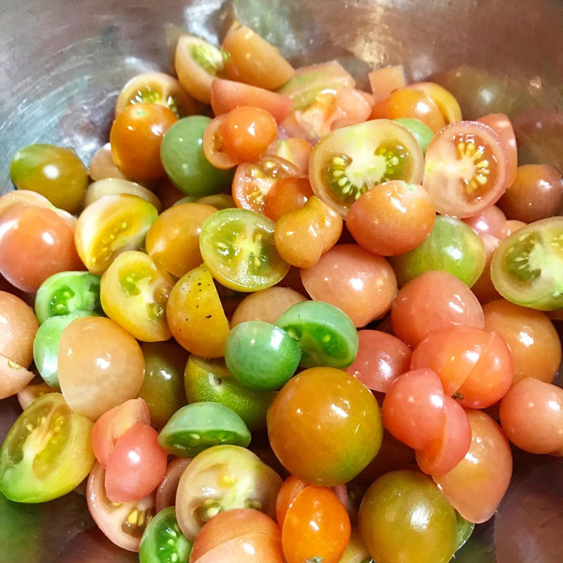 畑のミニトマトがたくさん採れたのでみにあのミネストローネ作る。