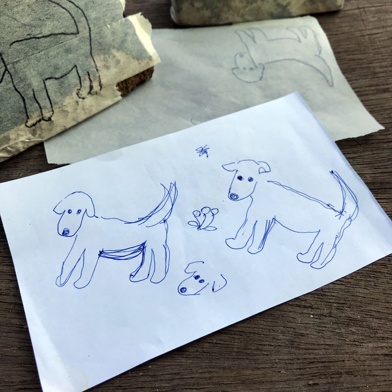 トレースして伊達冠石に彫った作品。個展の初日に新しい飼い主の家族の元へ行きました。今度の春から小学校という娘さんが「どうしてもこれ」と選んでくれたそうです。