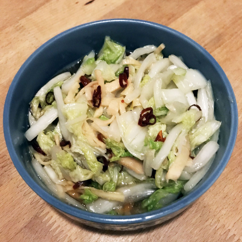 近所の方にいただいた台風をしのいだ貴重な白菜。芯が硬く締まってなかったので白菜漬けではなく甘酢漬け作った。 #ラーパーツァイ