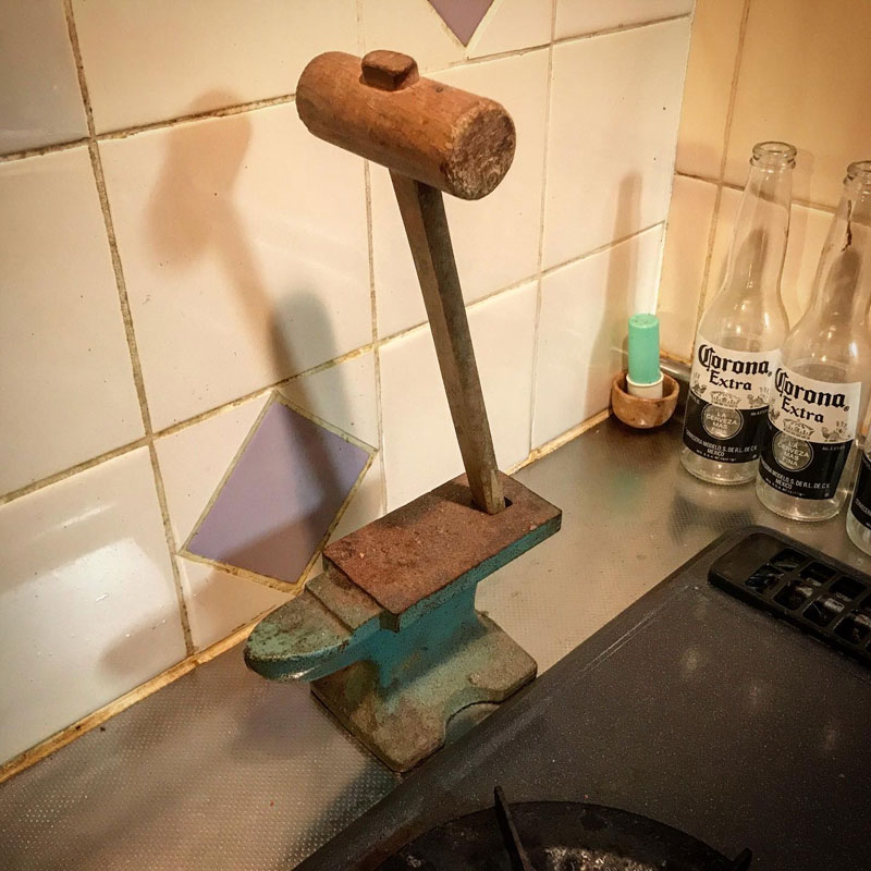 僕とカミさんは異常な銀杏好きなので煎る前に殻にヒビを入れるための銀杏専用の金床と木づちは