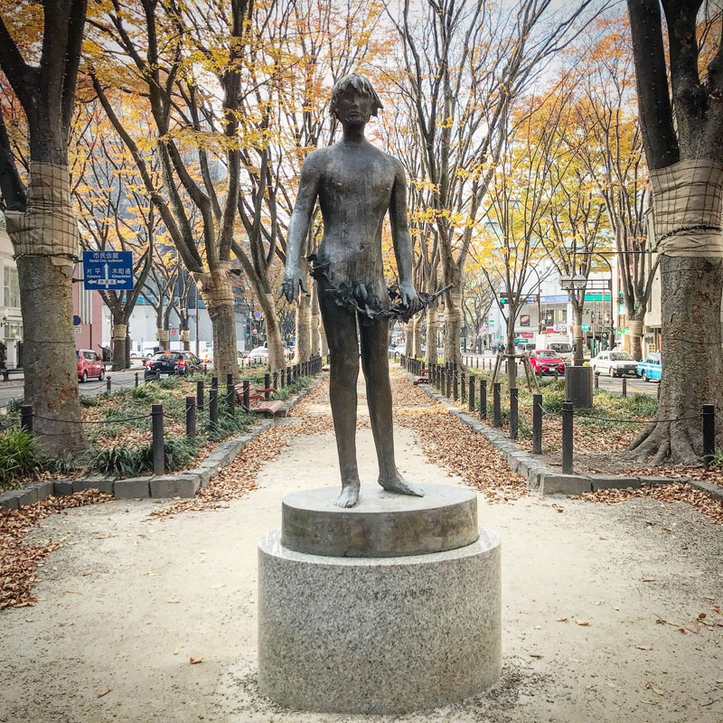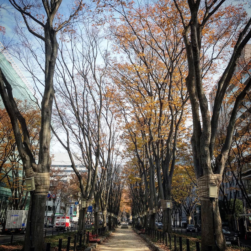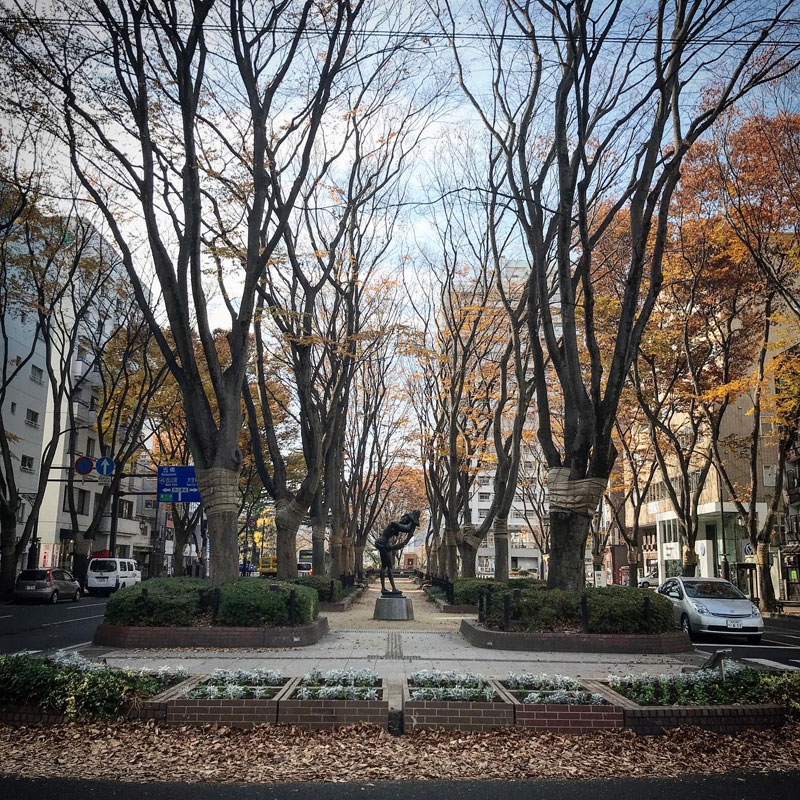 定禅寺通りの遊歩道を歩く。イベントの時以外には歩いている人はまずいない。