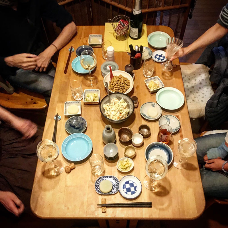 北海道に帰る前にしろまるさんの旅公演と僕の個展を我が家で乾杯!角田公演の手伝いをしてもらった友だちのあやこさんもよんで。