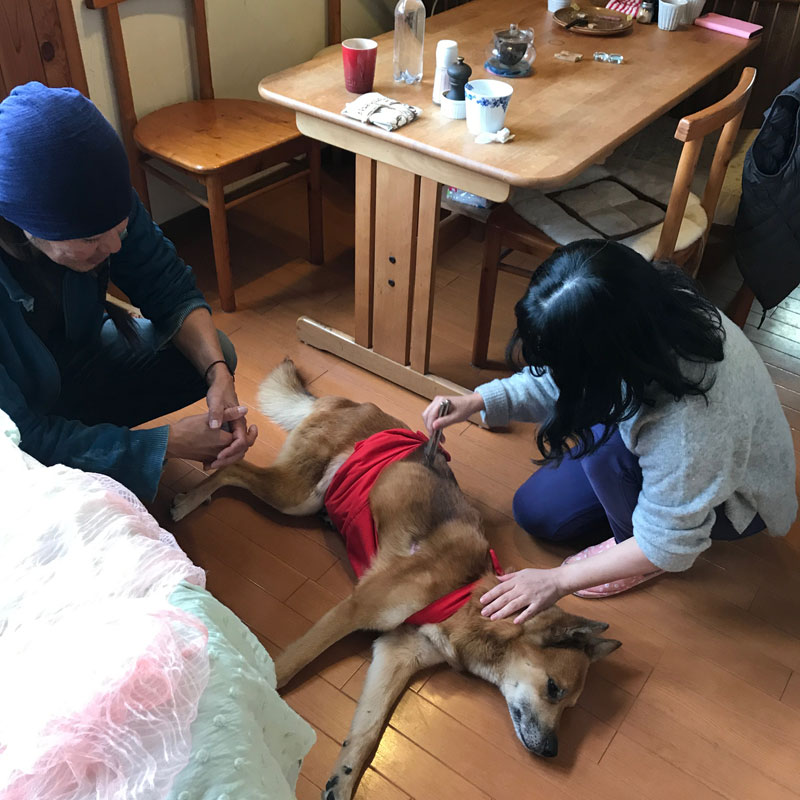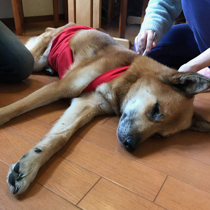 同じところなめなめし続けて皮膚がむき出しになってるところが。家まで後少しだ、がんばれ、あす!!