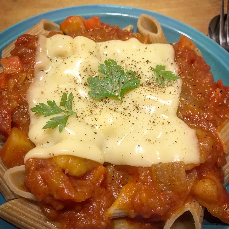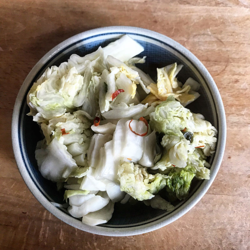 しろさんまるさんとの朝食。おふたりの愛犬あすぱらはすぐそばでグーグー。