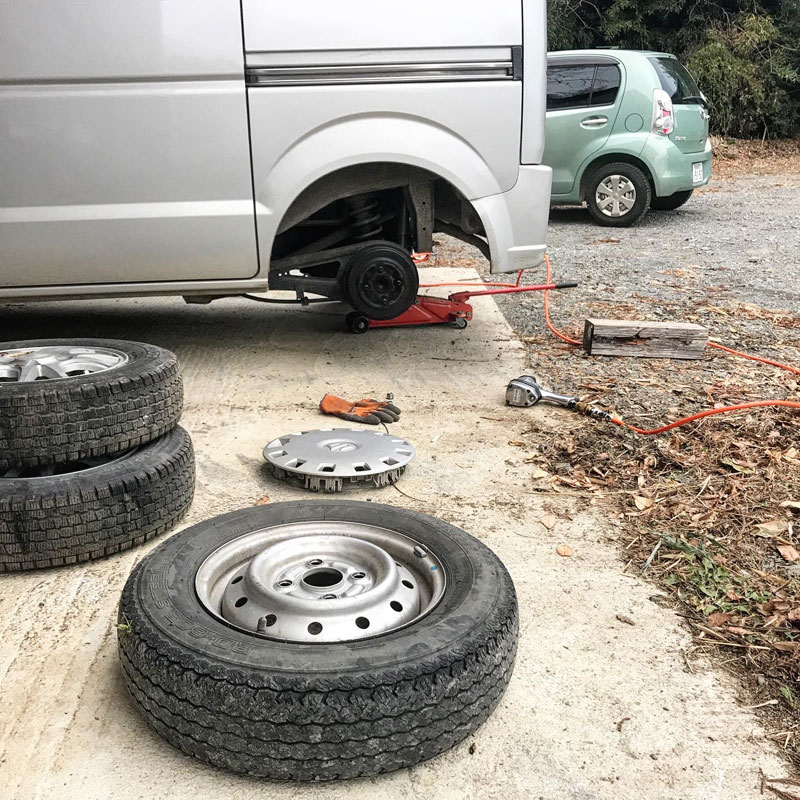 タイヤ交換してテスト走行も兼ねて町のガソリンスタンドに来たら