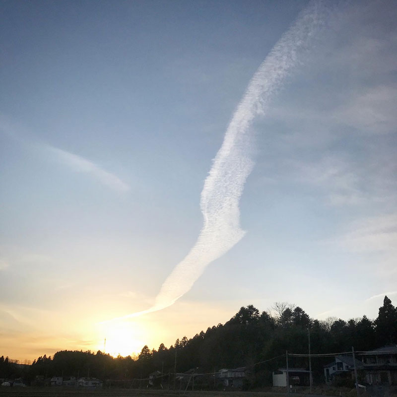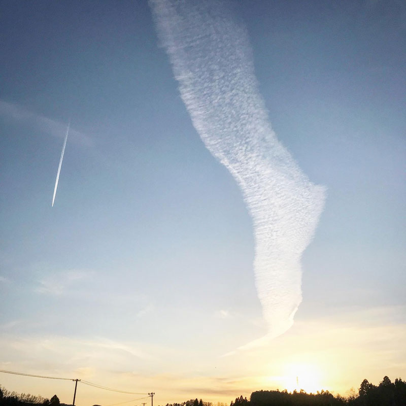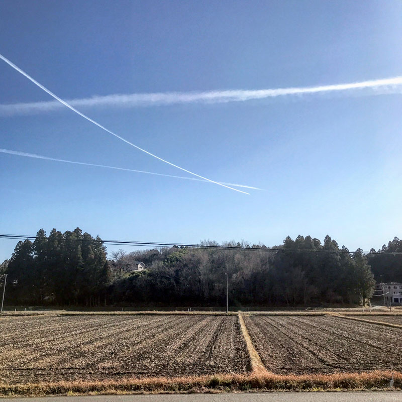 結局朝から夕方まで空は一日中、飛行機雲でいっぱいだった。