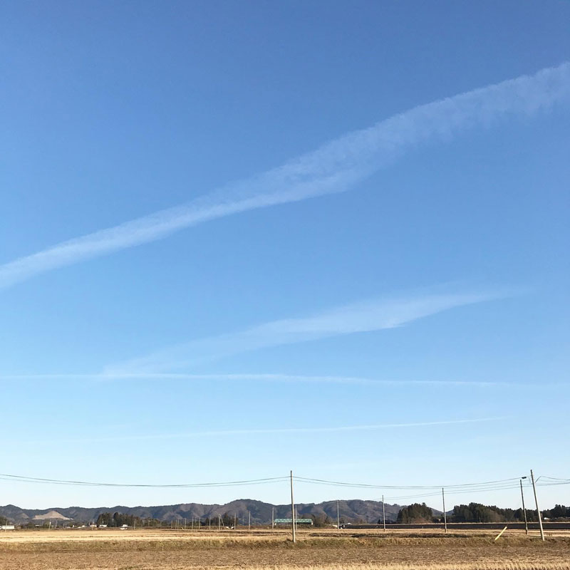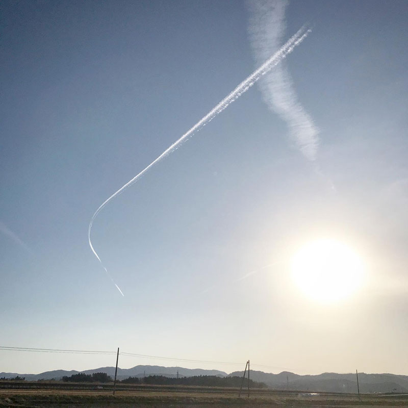 次々に飛行機が空に長い雲を作って行く。