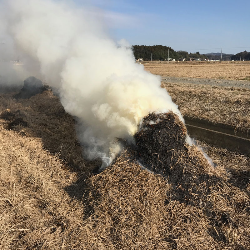 ワラを燃やす。蔵王には雪。だけど暑いくらいの陽気。師走なのに。