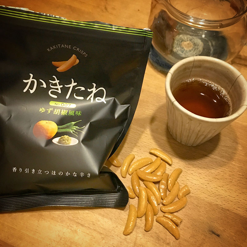 ゆず胡椒風味の柿の種いただいた。結構ピリ辛。