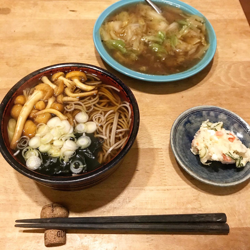 月曜日は麺曜日。美味しい出汁パックあると美味しい蕎麦作るのお手軽だ。かえしを作って合わせるだけ。