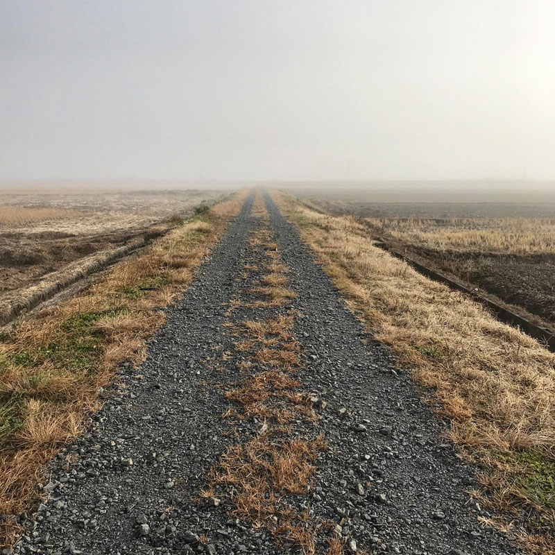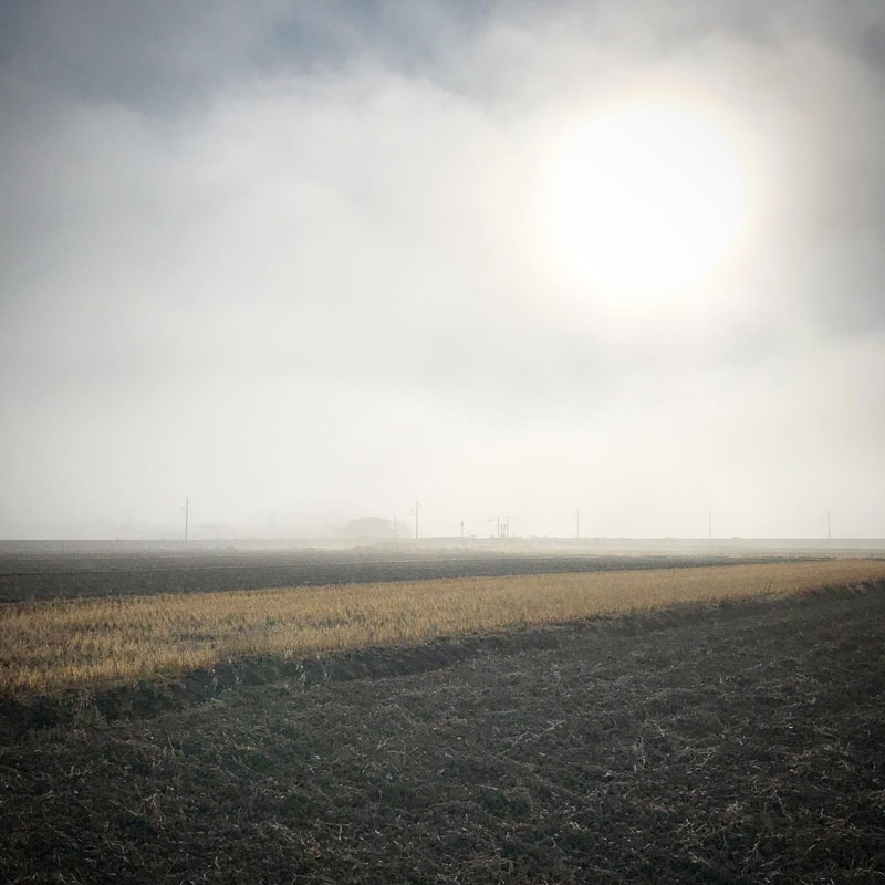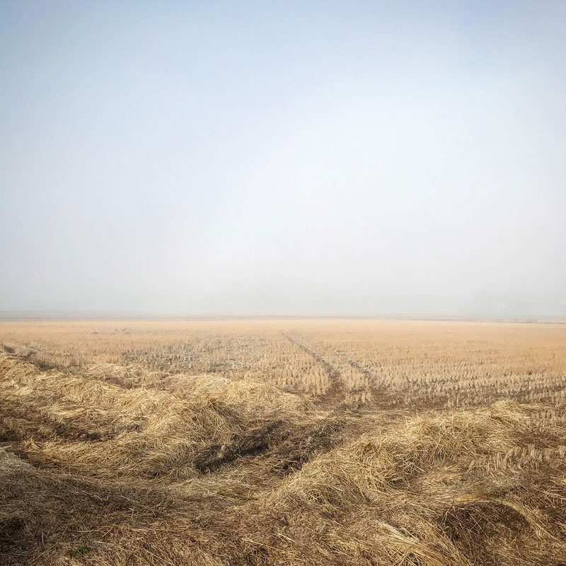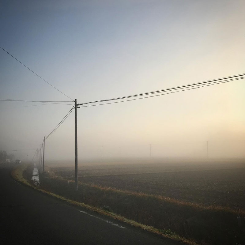 濃霧の朝。家の前の田んぼ。 #foggymorning