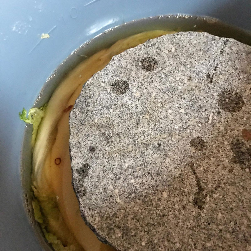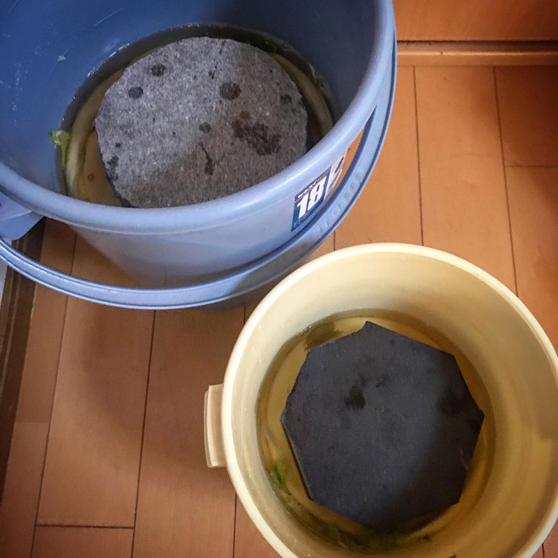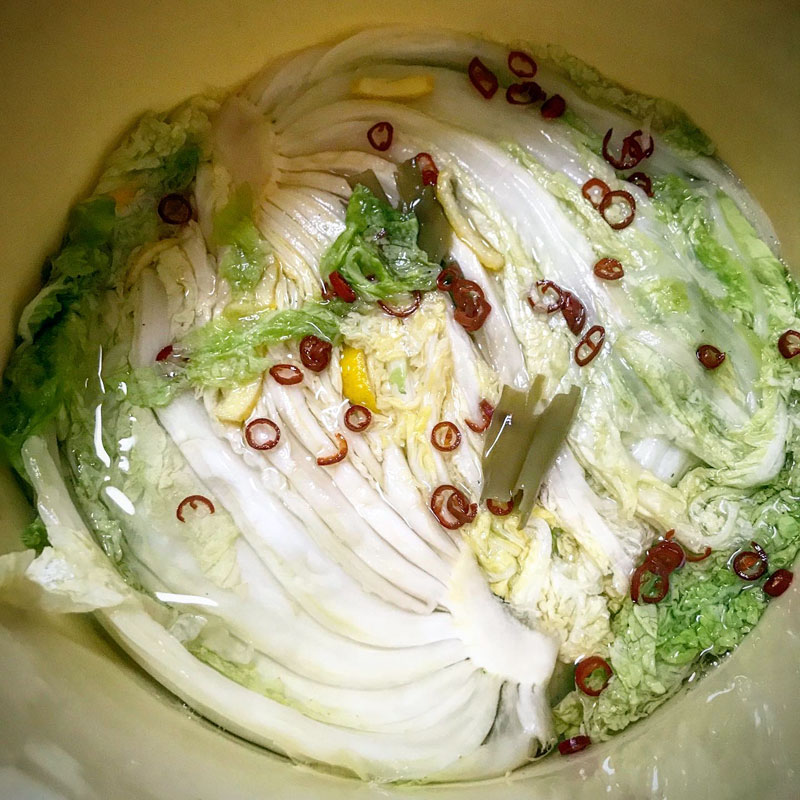 おととい樽を2段積みで仕込んだ白菜漬け。
