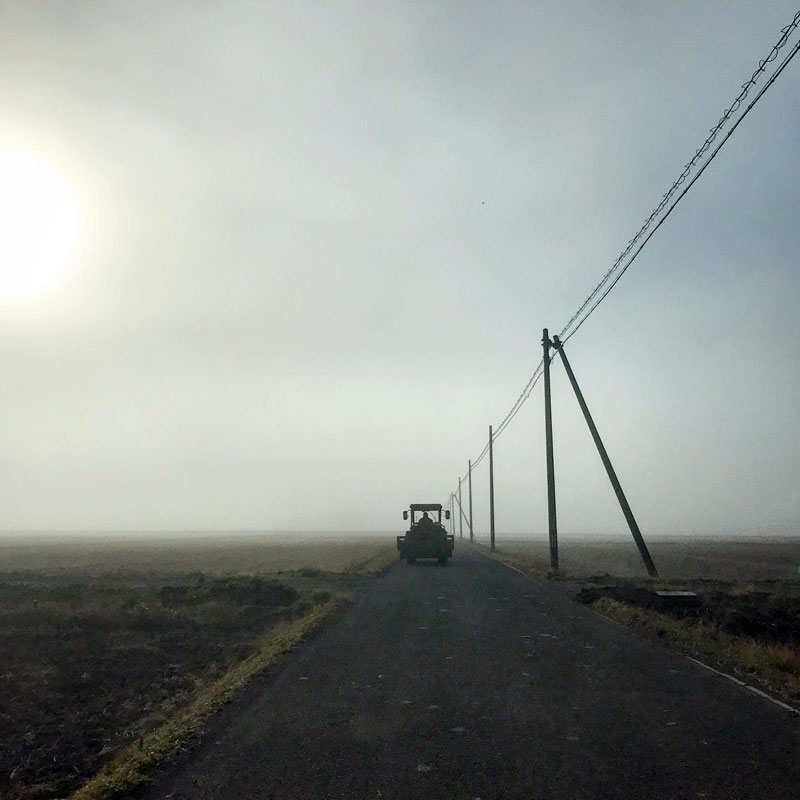あんまり霧が濃くてこの写真を寝巻きのまま寝ぼけ眼で道路に出て撮っていたら車がすぐそばまで来ていた。全然わからないくらいの濃霧だった。