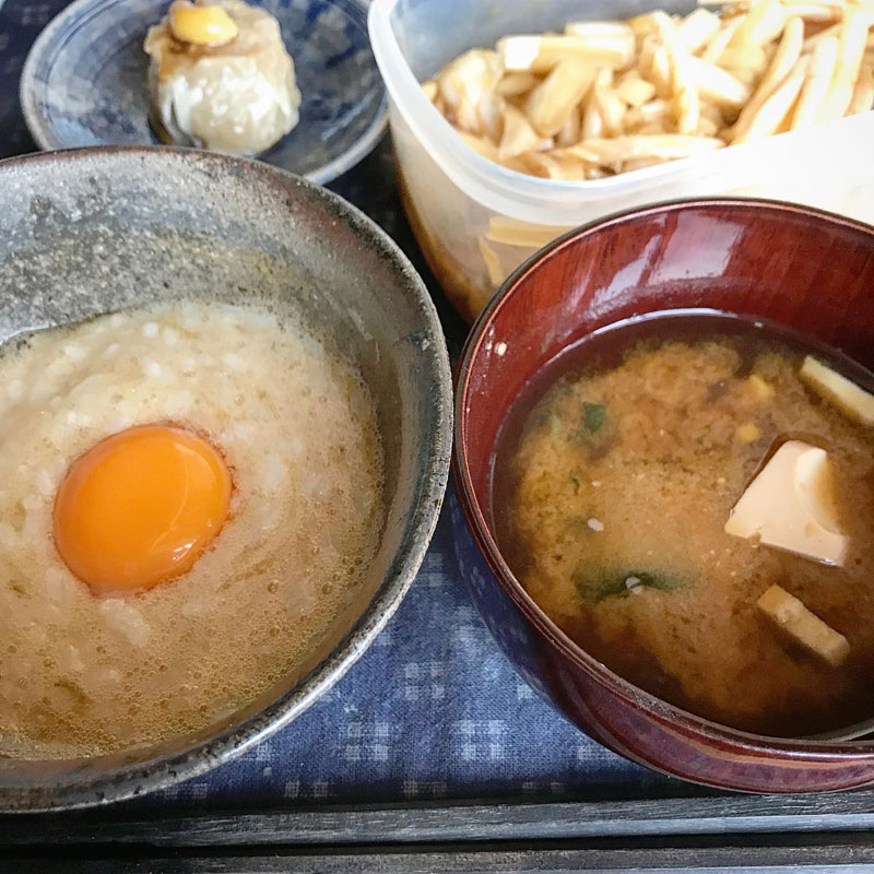 今日も白身だけをホイップした後黄身を乗せる卵かけ御飯。最後の方で黄身を割ってトロリ。