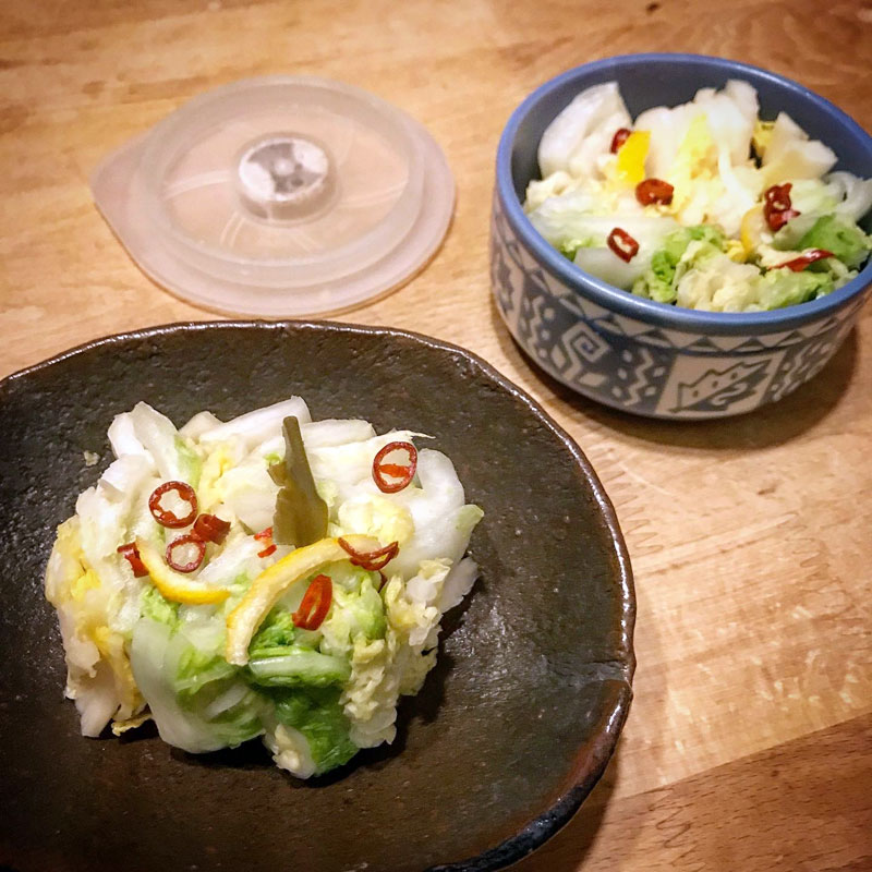 今宵から食べられる。今日はまだ漬かり始めだからサラダっぽくて美味しい。