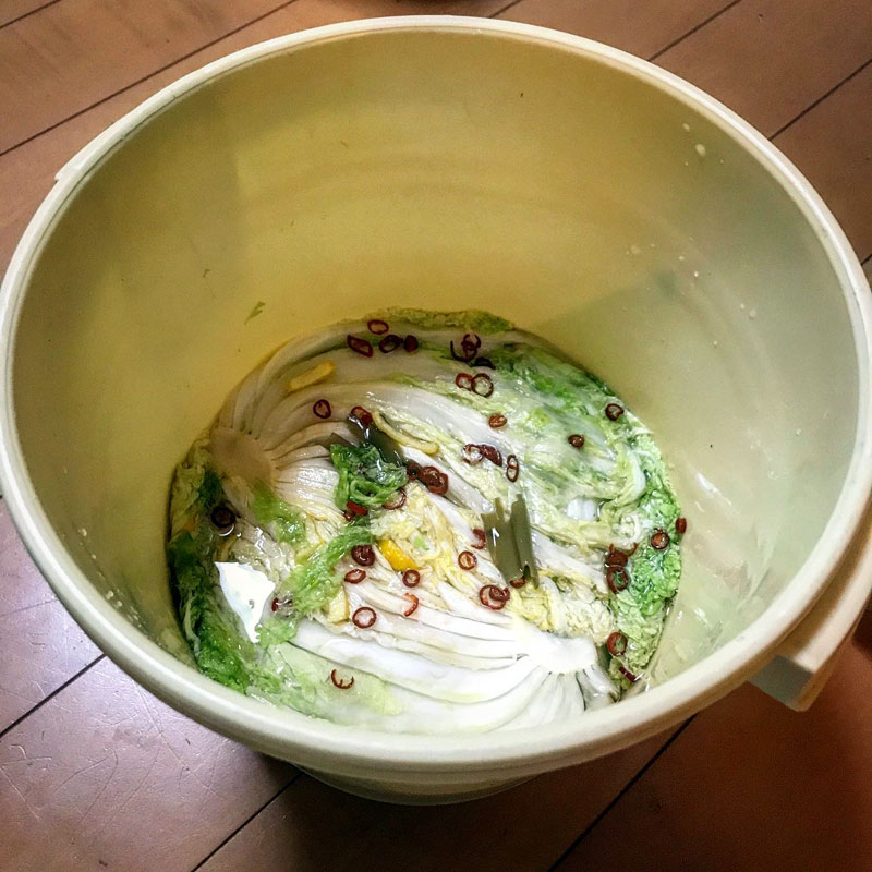 たくさん漬けたからこれからしばらく食卓に上る。我が家の冬はいつも、これが食卓の風景。今回の風味付けは昆布、鷹の爪、柚子。みかんの皮を干したのを入れたいなぁ。無農薬の。