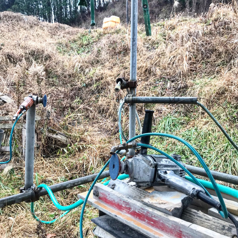寒い雨の中、寒さに負けそうになる気持ちを奮い立たせて石の磨きにきたんだけどホースの水が凍ったままで磨き仕事出来ず。