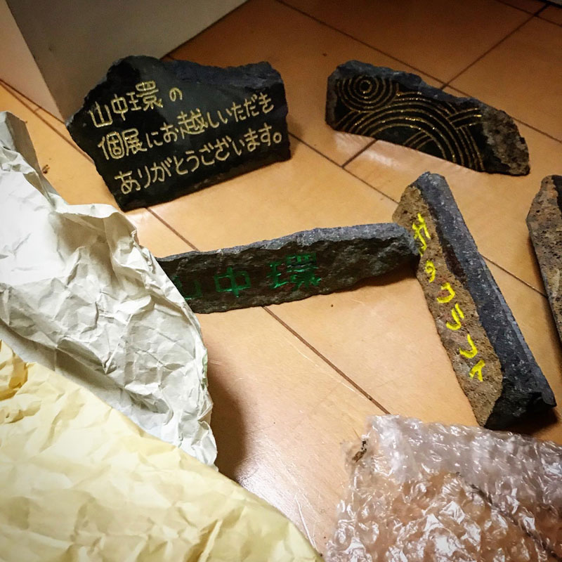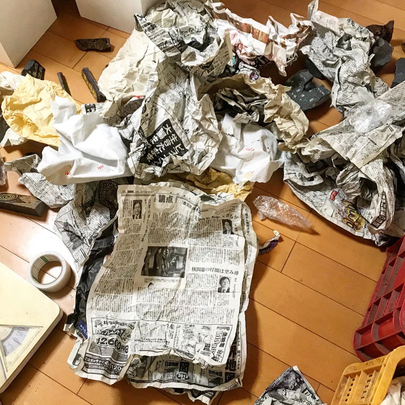石の一輪挿しや小作品を包んでいた新聞紙は伸ばして保管してまた次回に使う。個展の間、展示のため販売休止していた作品も今日からネットで販売再開。新作も何点か追加しよう。