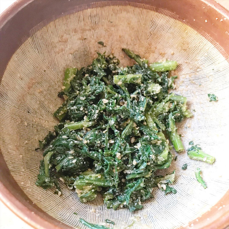 カミさんが胡麻和え作ってくれた。昼飯のおかずに。春菊を美味しく食べられるようになったのはずいぶん大人になってから。そして今や大好物。