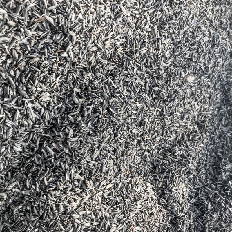 今朝の燻炭。とてもきれいに焼き上がっていて籾殻の形がそのまま残り固く軽い。