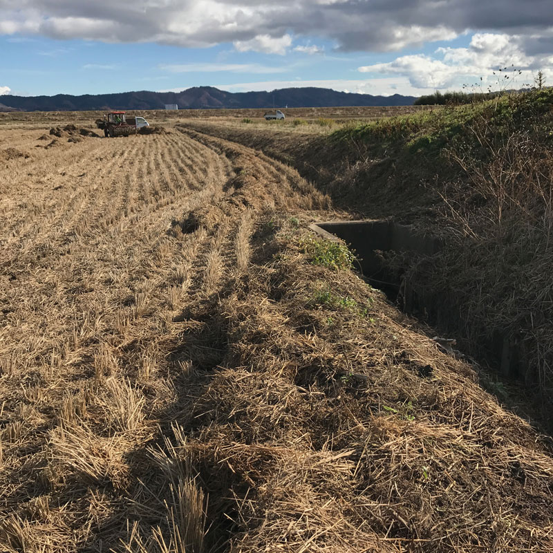 重機を使って稲わらの除去作業が行われている。
