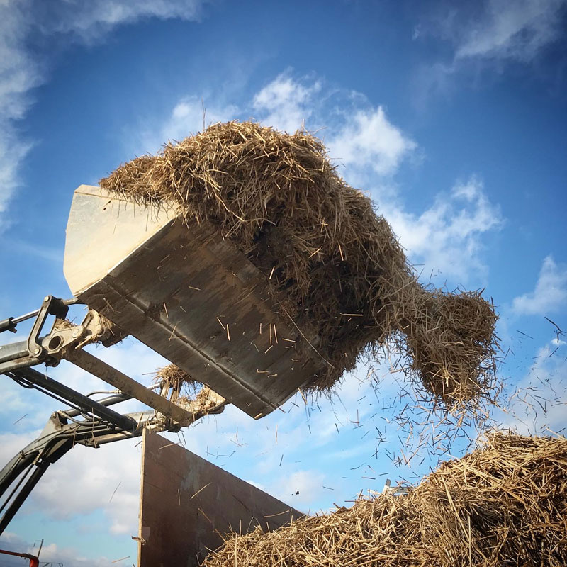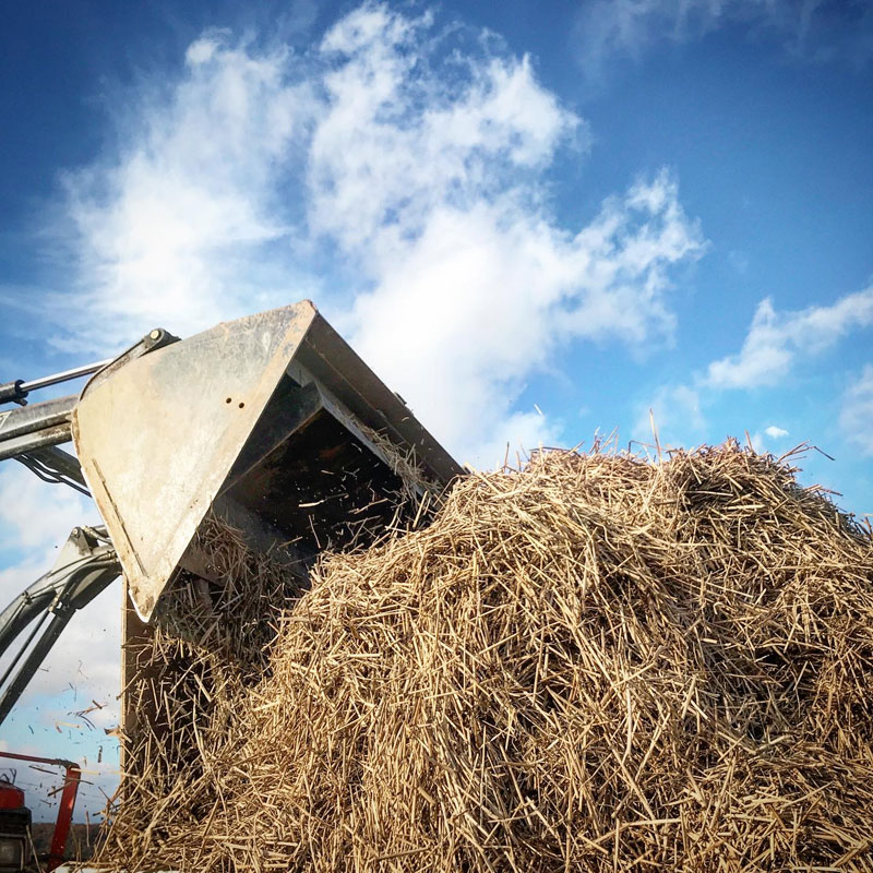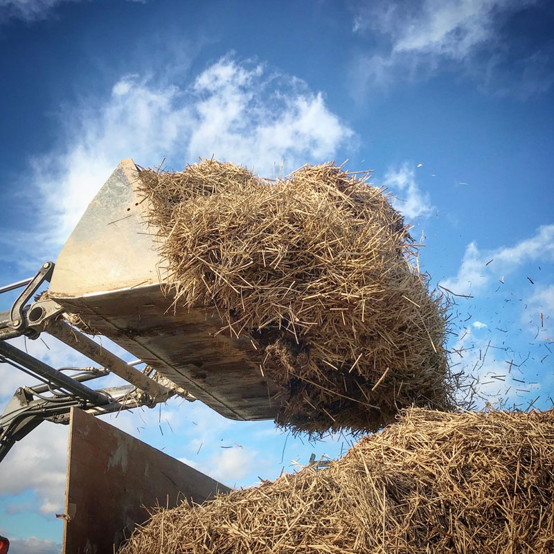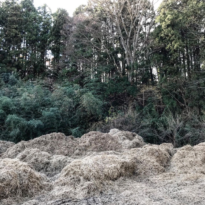 あちこちの仮置き場に見上げるような稲わらの山が出来上がっている。
