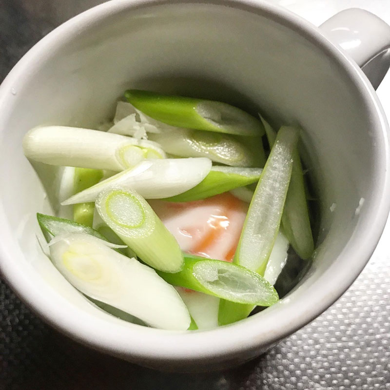 KOHARUマグカップで卵と長ネギたっぷり入れて。