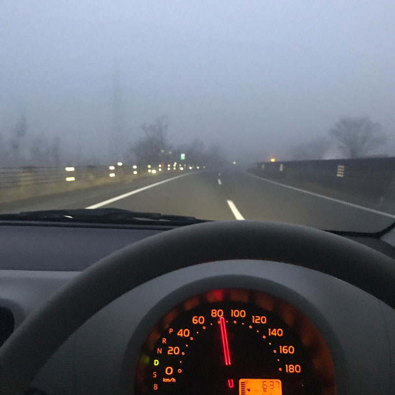 ただでさえ暗いところでは目がよく見えなくなってるのに道路は凍ってるし走っても走っても濃霧で疲れる。