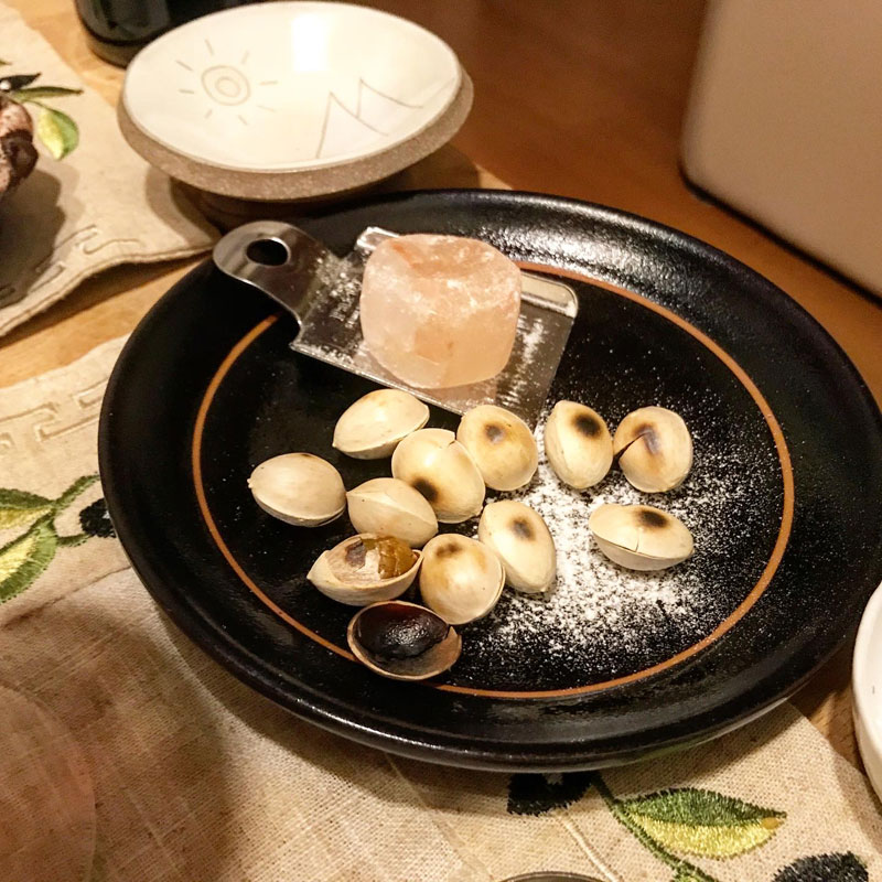 この季節、飲む日には欠かせない銀杏焼き。白菜漬け。
