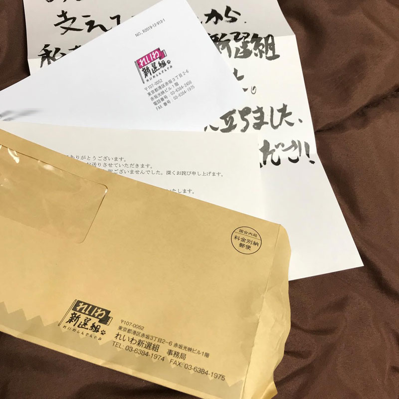 今日、わずかばかりの寄附金に対する領収書と手紙が送られてきた。メロリンキューの頃から俺はずっと山本太郎が好きだ。これからも応援する。